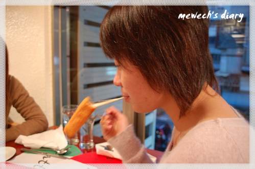 薄餅(pizza)熱呼呼的,一拉芝士就拉成一條線。