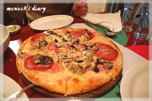 好像義大利餐館大多pizza都是薄皮的樣子哩,
