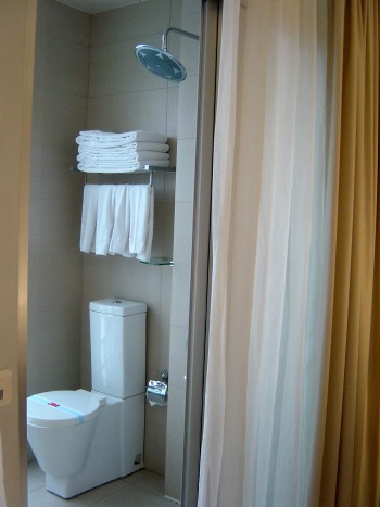 但設計不良.....衛生紙旁就是沖澡的蓮蓬頭,