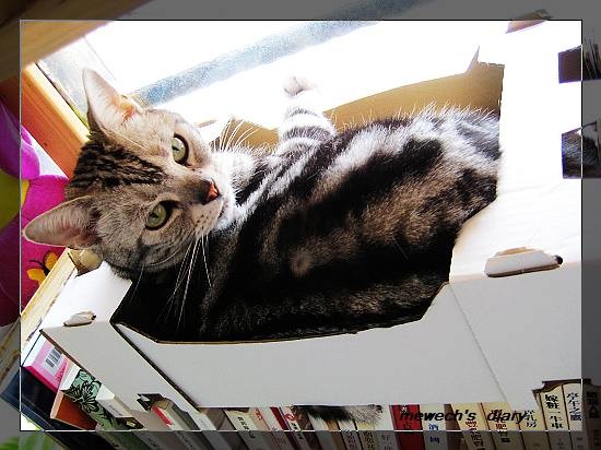 重點是,已經娻功到可以全貓上紙盒而不會掉下來囉....