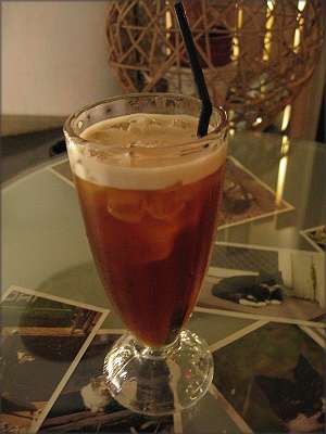 我選了一個旁邊有花草‧桌上有貓咪照片的桌子坐下來,