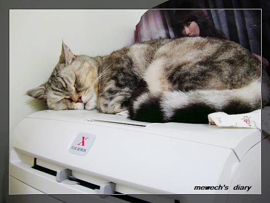 人家說,貓在鋼琴上昏倒了....我家妹妹在印表機上昏倒了...