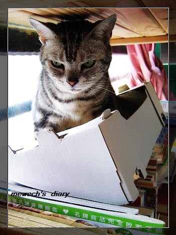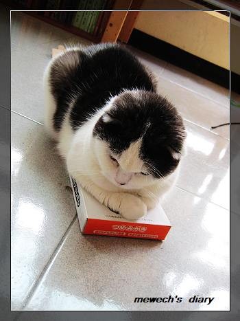 今天我一邊舔毛時,發現怎麼連老媽子都坐在這紙盒上,