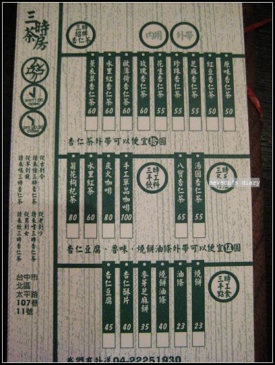 三時杏仁茶坊:台中市太平路107巷11號。