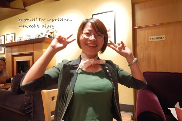 (脖子上綁的是星巴克蛋糕盒的鍛帶,把我送給你吧!哈!)