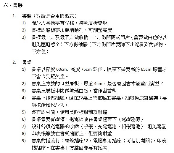 我寫下了書本上的建議 及 自家的需求。