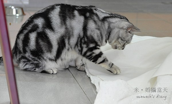 總算換上第一套白紗,