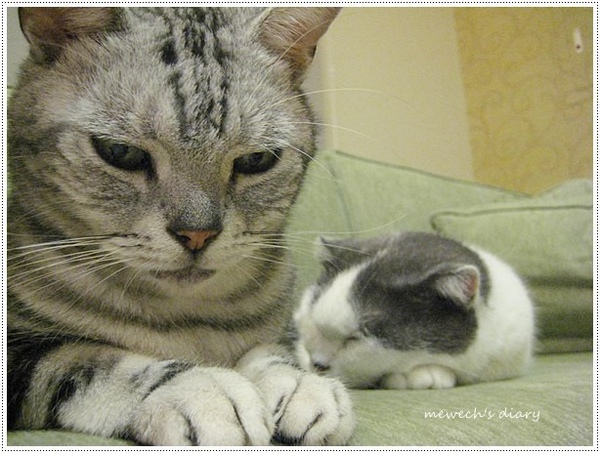 沒想到米米居然自己跑到媚娘旁邊趴著,
